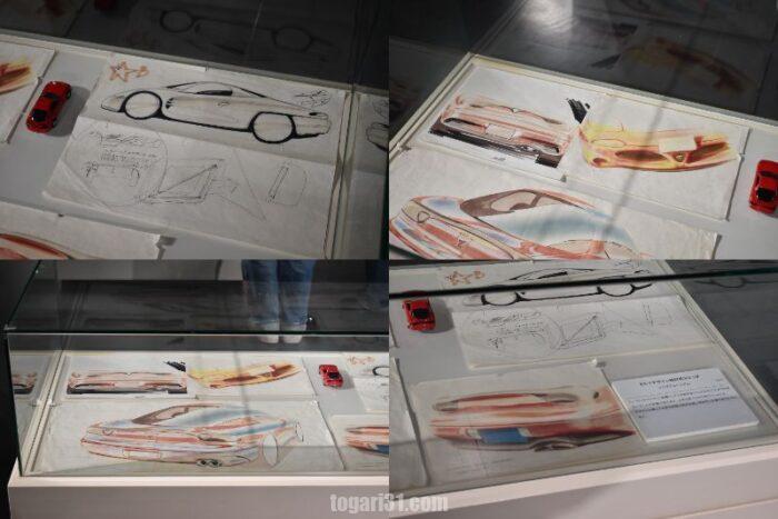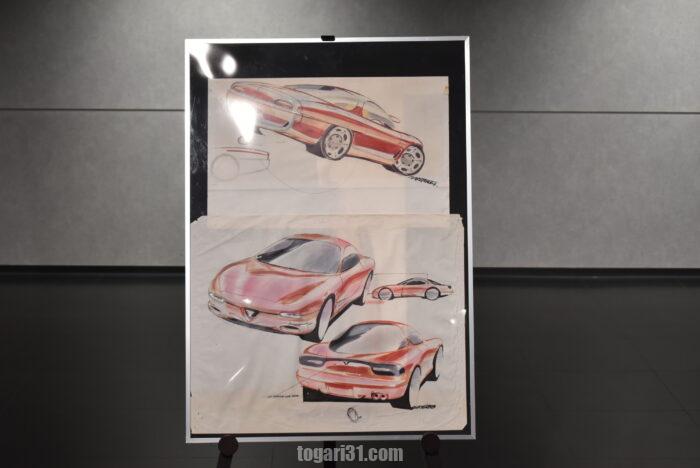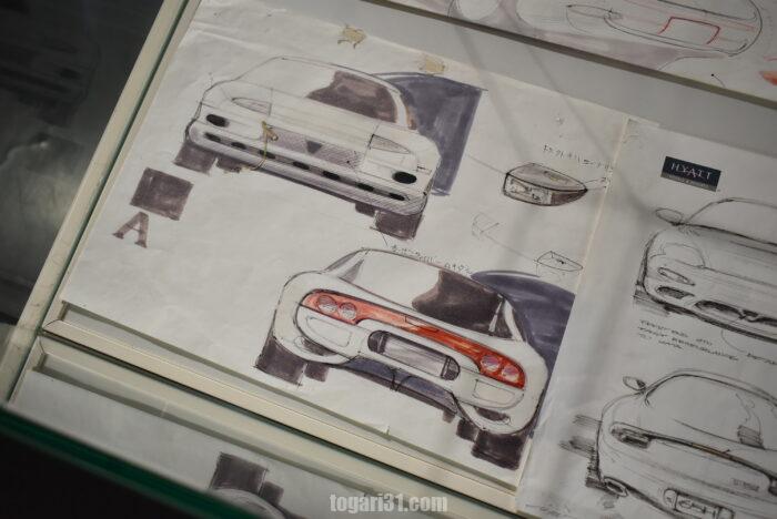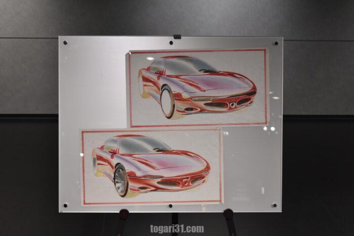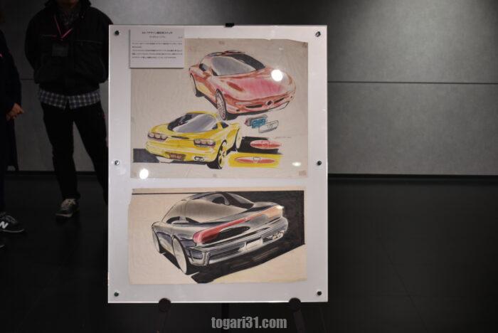 今回特別に展示された3代目RX-7のデザインスケッチ。