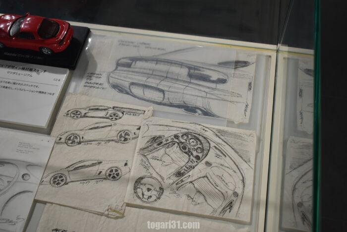 デザイナーさんが開発中にインスピレーションでひらめいたRX-7の貴重なデザインスケッチをご紹介します!